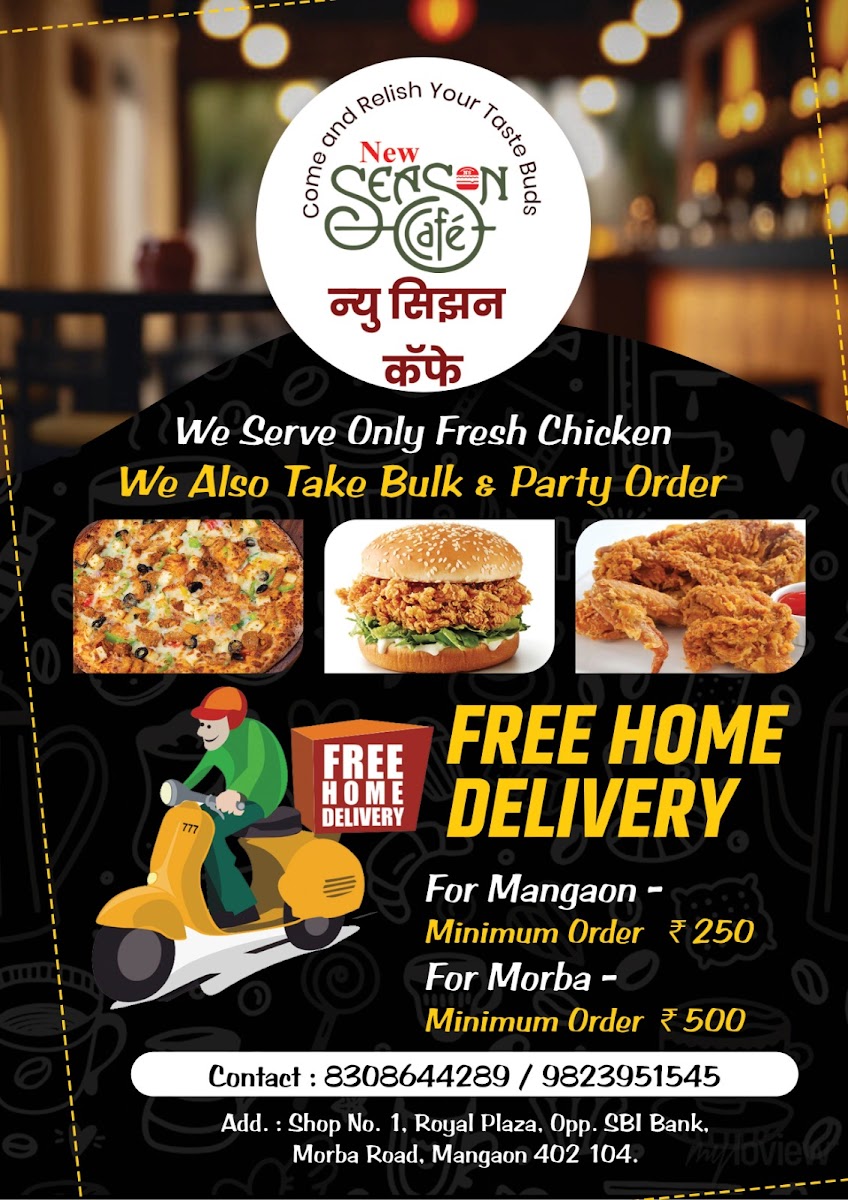 Welcome to New Season Cafe, a delightful addition to Mangaon's culinary scene! Located opposite the SBI on Morba Road, this newly opened café is a haven for fast food lovers. Offering a range of mouthwatering options from burgers and pizzas to crispy French fries and savory sandwiches, there's something for everyone, whether you're a vegetarian or a non-vegetarian.